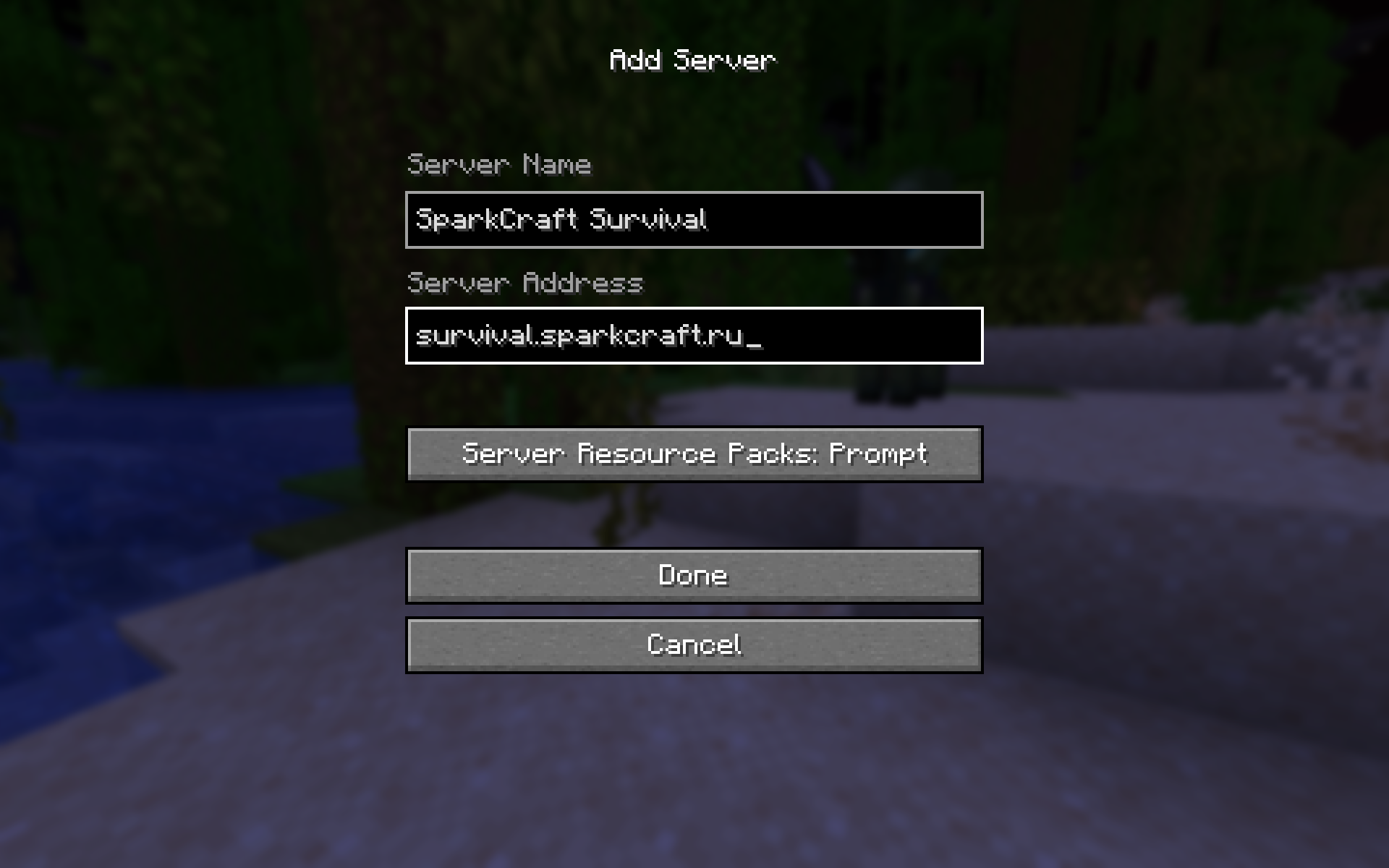 После успешной оплаты пропуск привязывается к вашему никнейму автоматически. Откройте Minecraft, перейдите в Multiplayer → Add Server, введите один из адресов ниже и нажмите Done. Если основной адрес недоступен в вашем регионе — используйте резервный, оба ведут на один и тот же сервер.